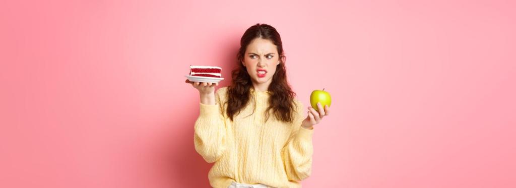 Atme dreimal tief durch, prüfe Hunger auf einer Skala von eins bis zehn, formuliere eine Absicht: nähren, nicht nur füllen. Dieses Mini-Ritual reduziert Überessen spürbar. Probiere es heute Abend und berichte, wie es deinen Essrhythmus verändert hat.